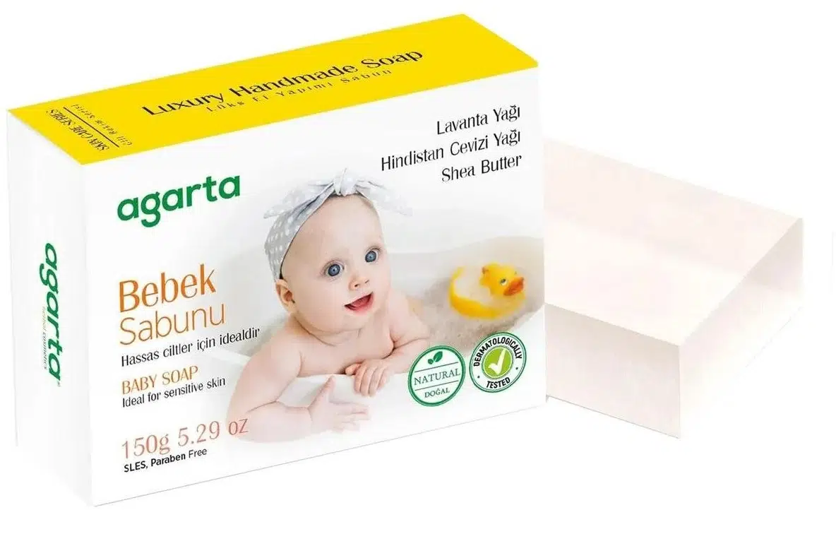 Agarta Bebek Doğal Sabun, el yapımı ve bitkisel içerikli özel formülüyle bebeklerin hassas cildine uygun olarak üretilmiştir. Nazik temizleme etkisi sayesinde cildi kurutmadan arındırır ve doğal nem dengesinin korunmasına yardımcı olur. Geleneksel yöntemlerle hazırlanan sabun, bebek bakım rutininde güvenle kullanılabilecek yumuşak dokulu bir temizlik sunar. Yüz, vücut ve ellerde günlük kullanıma uygundur.