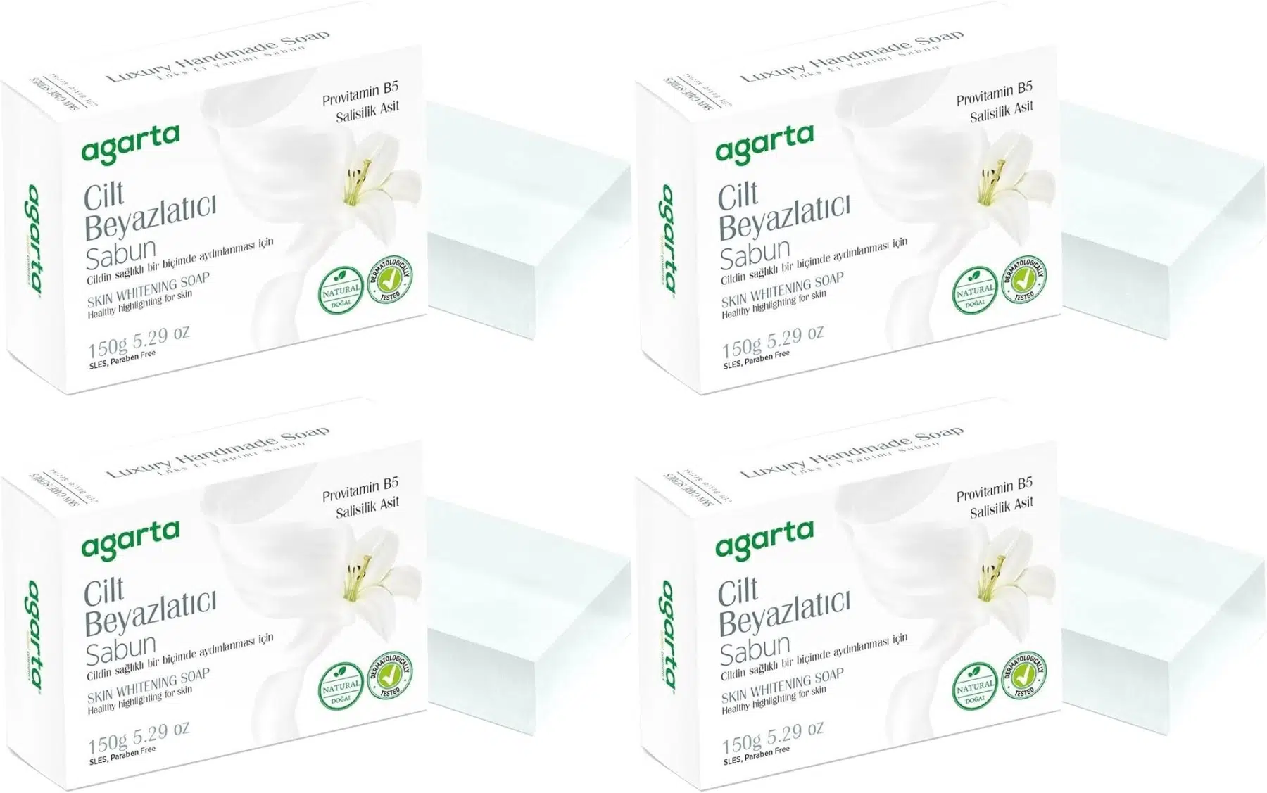 | Etiketler | Agarta El Yapımı Doğal Sabun 150GR Cilt Beyazlatıcı (4 Lü Set) |