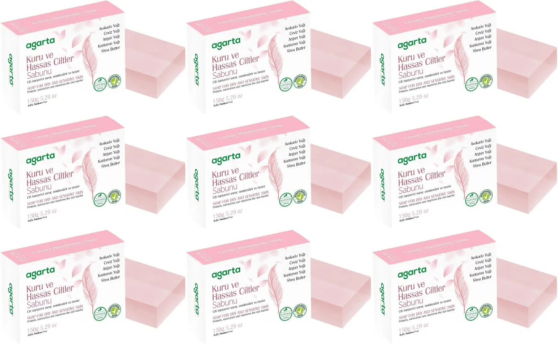 | Etiketler | Agarta El Yapımı Doğal Sabun 150GR Kuru ve Hassas Ciltler (9 Lu Set) |