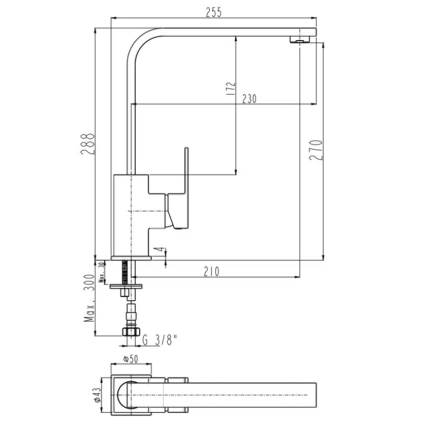 Çıkış Ucu Uzunluğu 196 mm'dir.Çıkış Ucu Yüksekliği 288 mm'dir.