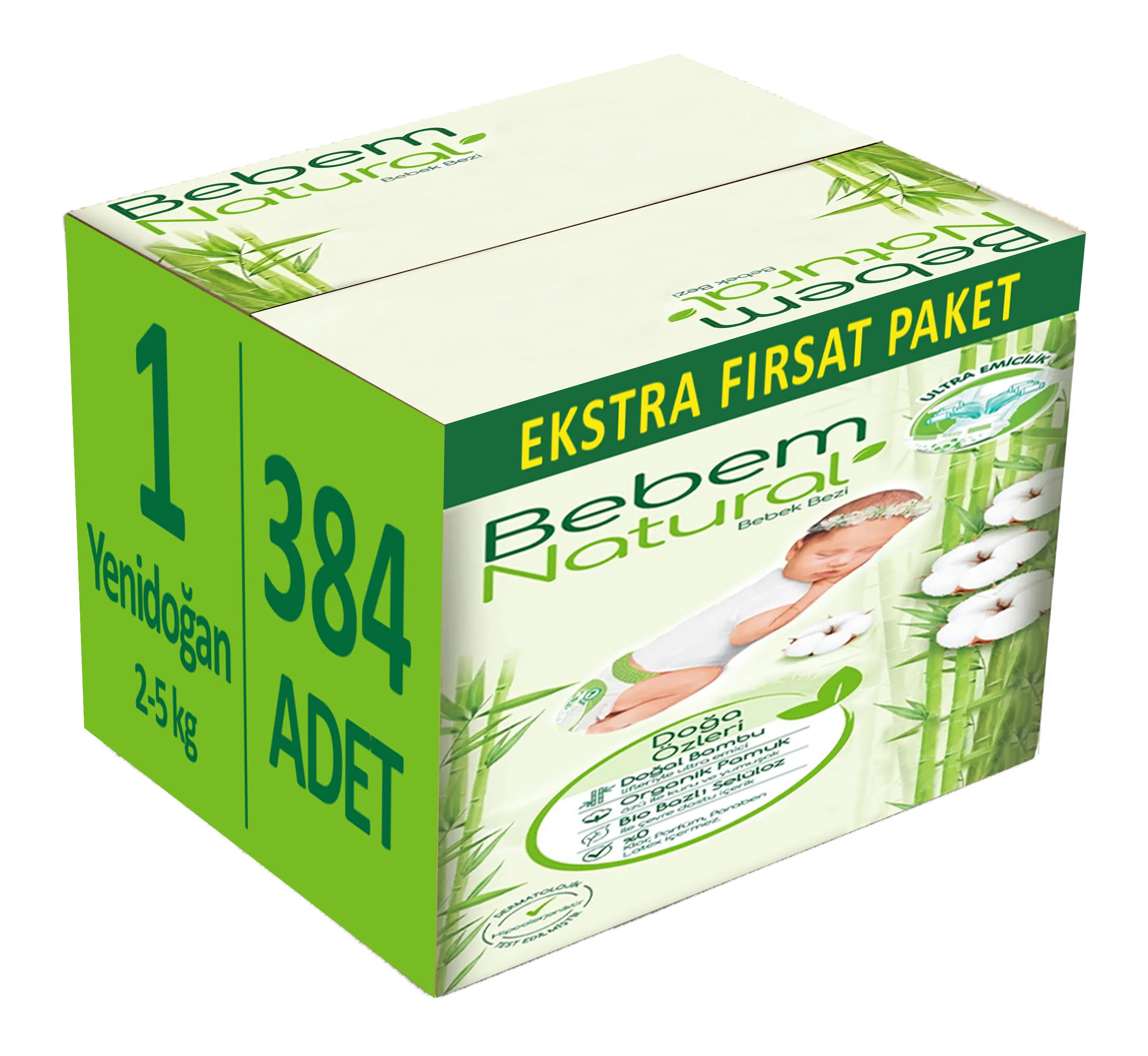 Bebem Bebek Bezi Natural Beden:1 (2-5Kg) Yenidoğan 384 Adet Ekstra Fırsat Pk