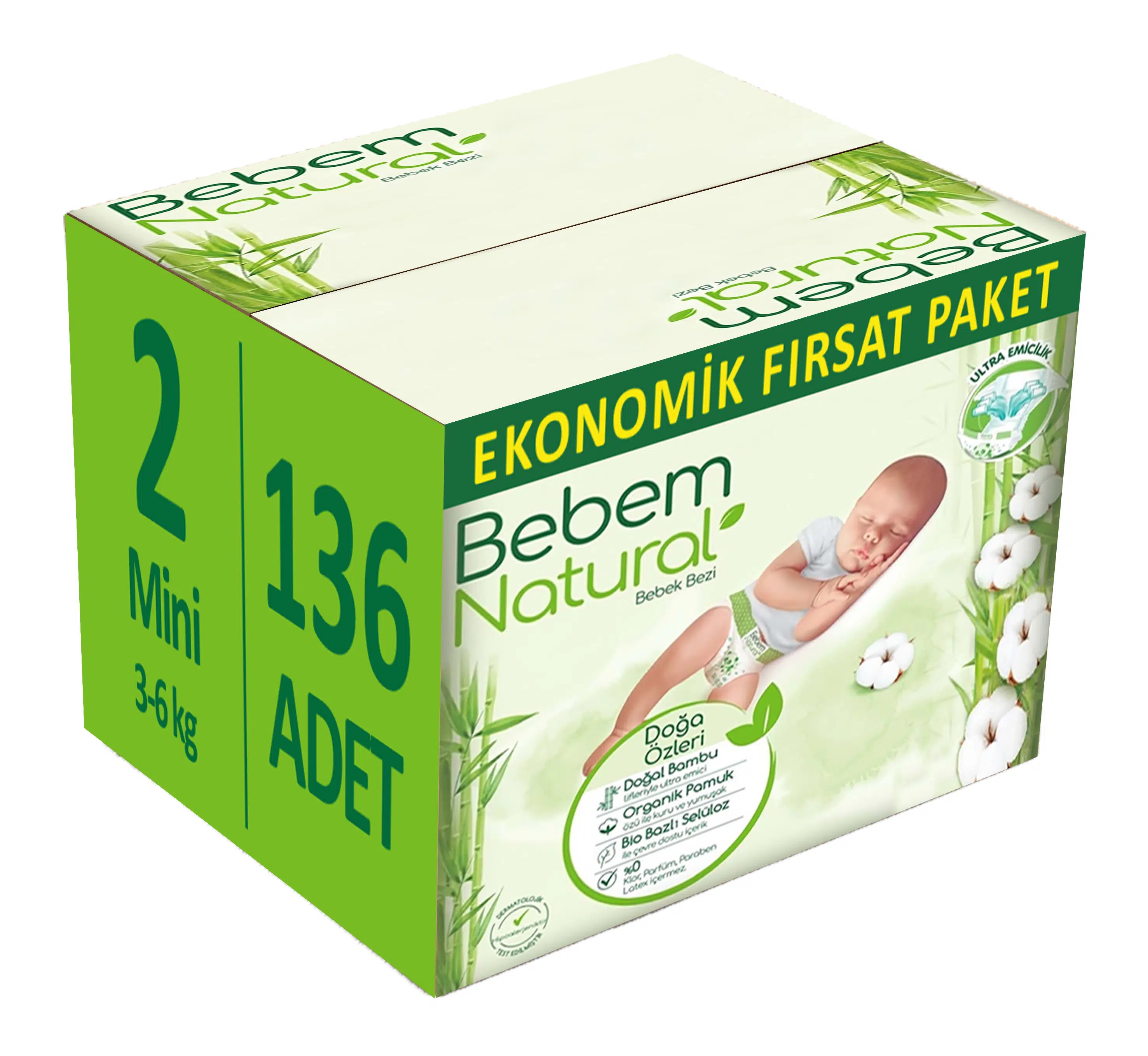 Bebem Bebek Bezi Natural Beden:2 (3-6Kg) Mini 136 Adet Ekonomik Fırsat Pk