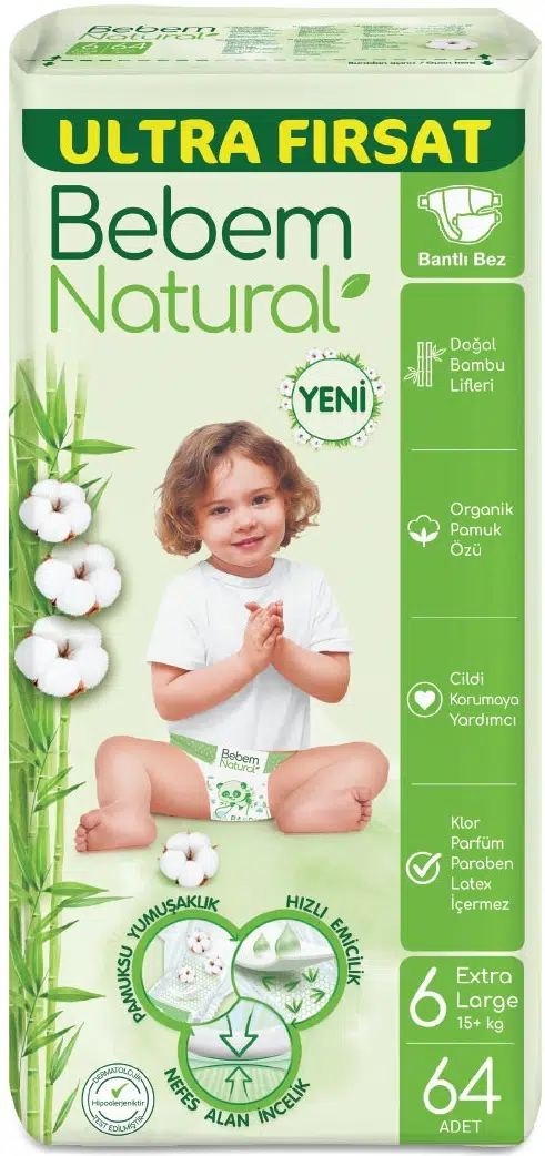 | Etiketler | Bebem Bebek Bezi Natural Beden:6 (15+Kg) Extra Large 64 Adet Ultra Fırsat Pk |