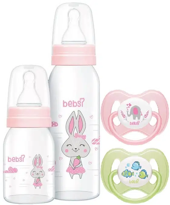 | Etiketler | Bebsi Cam Biberon Seti Pembe (250ML+125ML)+Emzik Ortodontik Damaklı Kelebek No:1 (2 Li PK) 4 Lü Set |