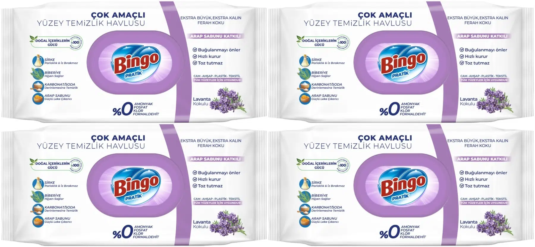 | Etiketler | Bingo Clean Yüzey Temizlik Havlusu 96 Yaprak Lavanta Kokulu Plastik Kapaklı (4 Lü Set) 384 Yaprak |