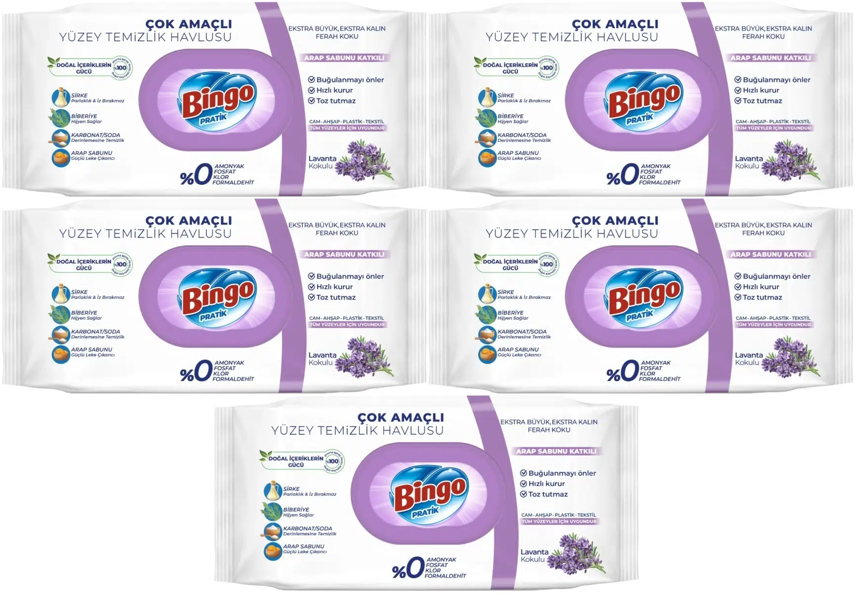 | Etiketler | Bingo Clean Yüzey Temizlik Havlusu 96 Yaprak Lavanta Kokulu Plastik Kapaklı (5 Li Set) 480 Yaprak |