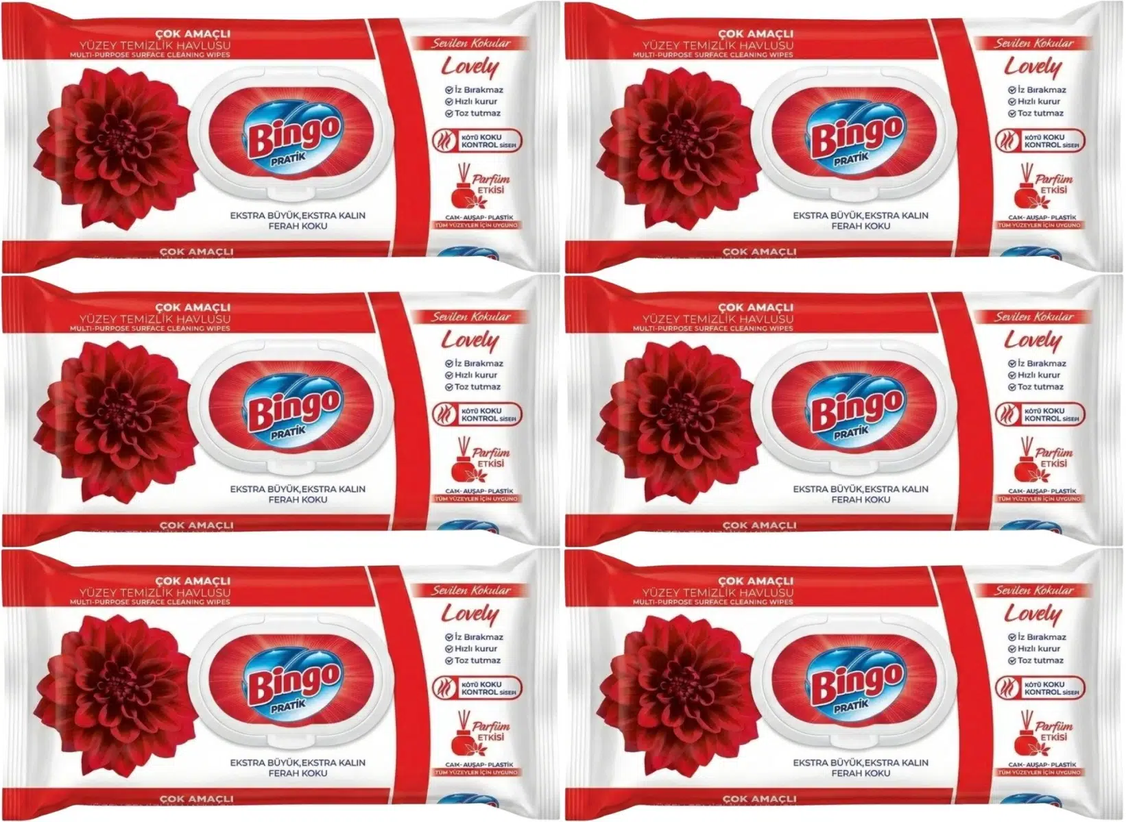Bingo Clean Yüzey Temizlik Havlusu 96 Yaprak Sevilen Kokular Lovely - Gül (6 Lı Set) 576 Yaprak