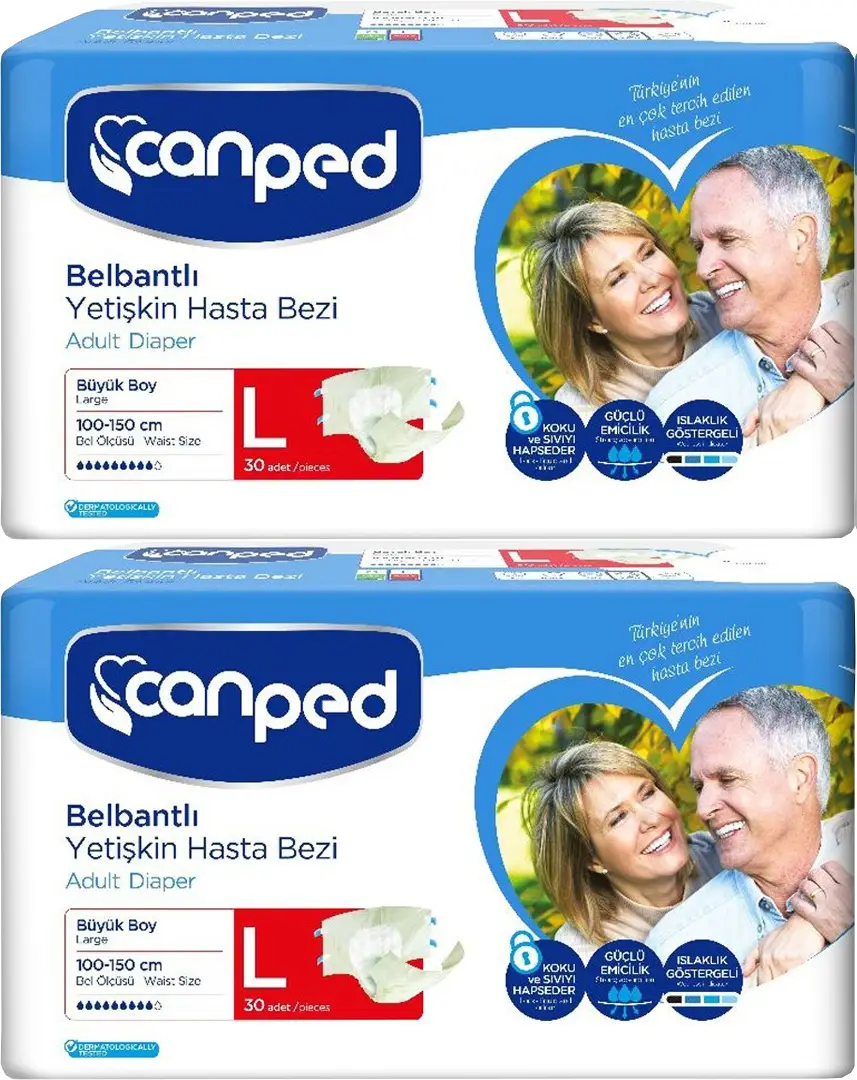 | Etiketler | Canped Hasta Bezi Yetişkin Bel Bantlı Polietilen L-Büyük Boy 60 Adet |