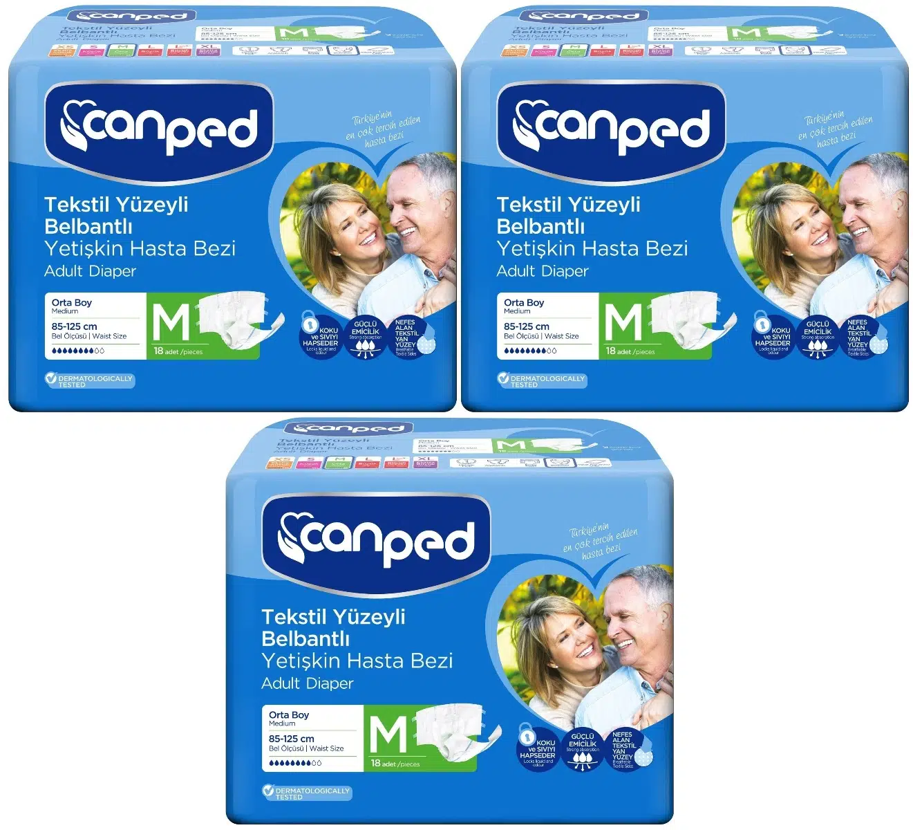 | Etiketler | Canped Hasta Bezi Yetişkin Bel Bantlı Tekstil Yüzey M-Orta Boy 54 (3PK*18) |