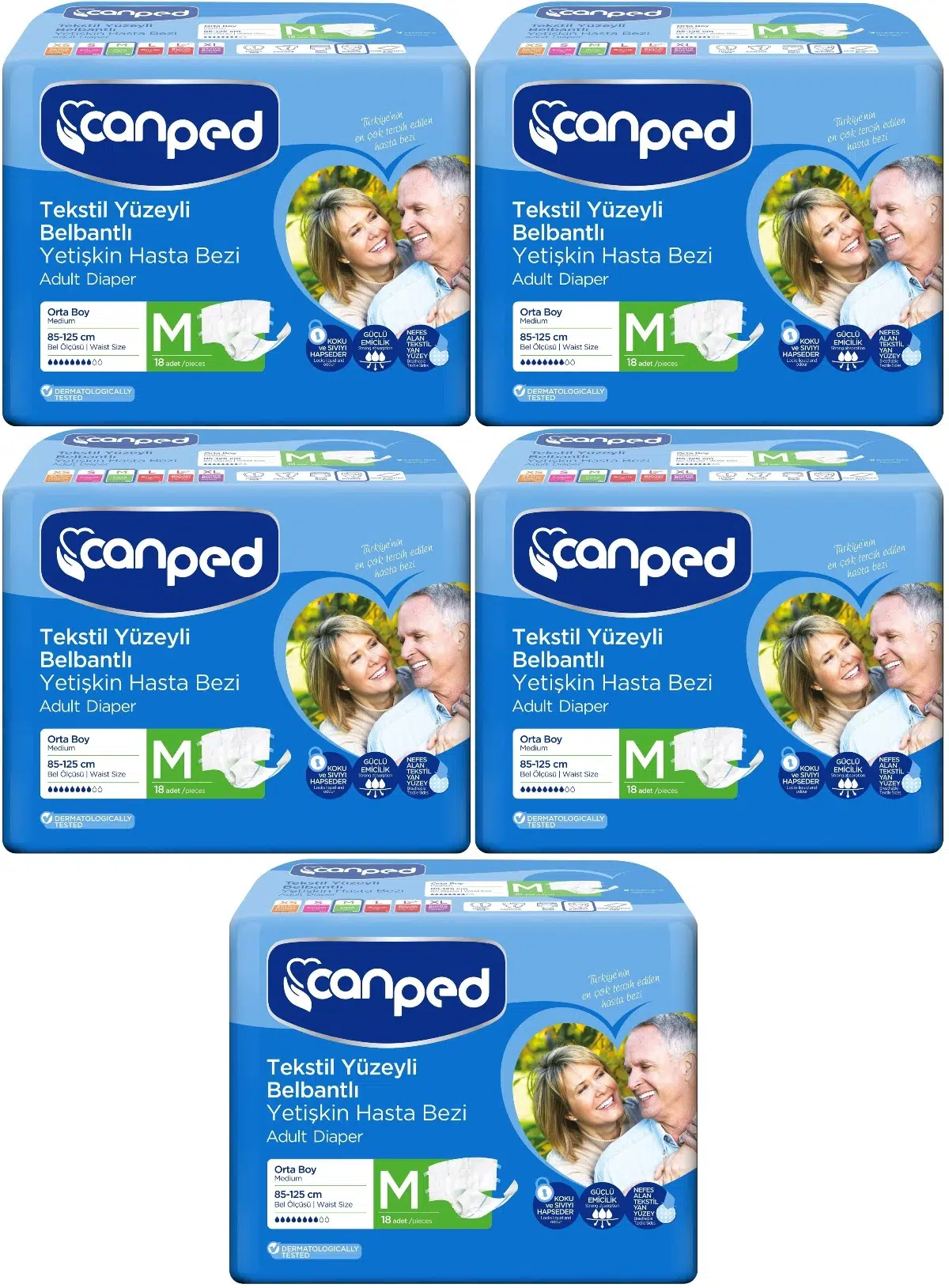 | Etiketler | Canped Hasta Bezi Yetişkin Bel Bantlı Tekstil Yüzey M-Orta Boy 90 (5PK*18) |