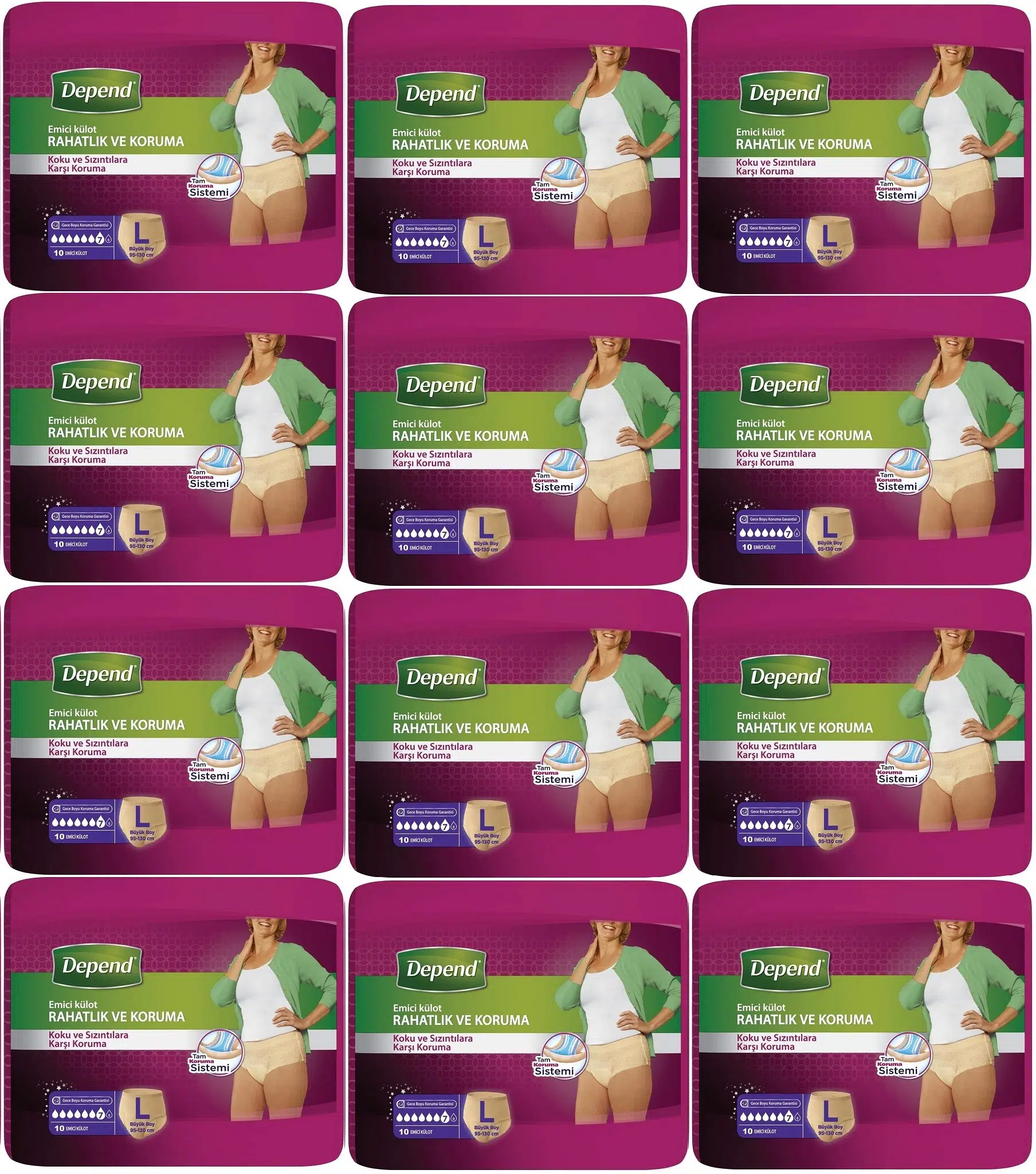 Depend Emici Külot Hasta Bezi Large - Büyük Kadın 120 Adet (12PK*10)