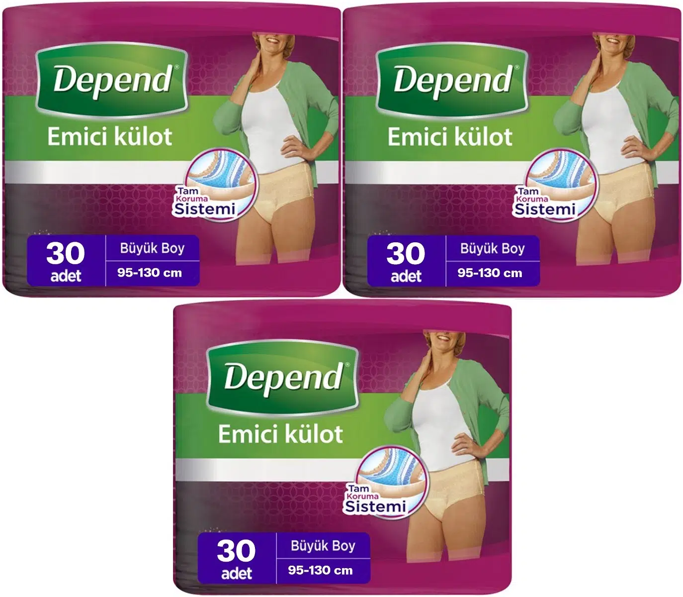 Depend Emici Külot Hasta Bezi Large - Büyük Kadın 90 Adet (3PK*30)