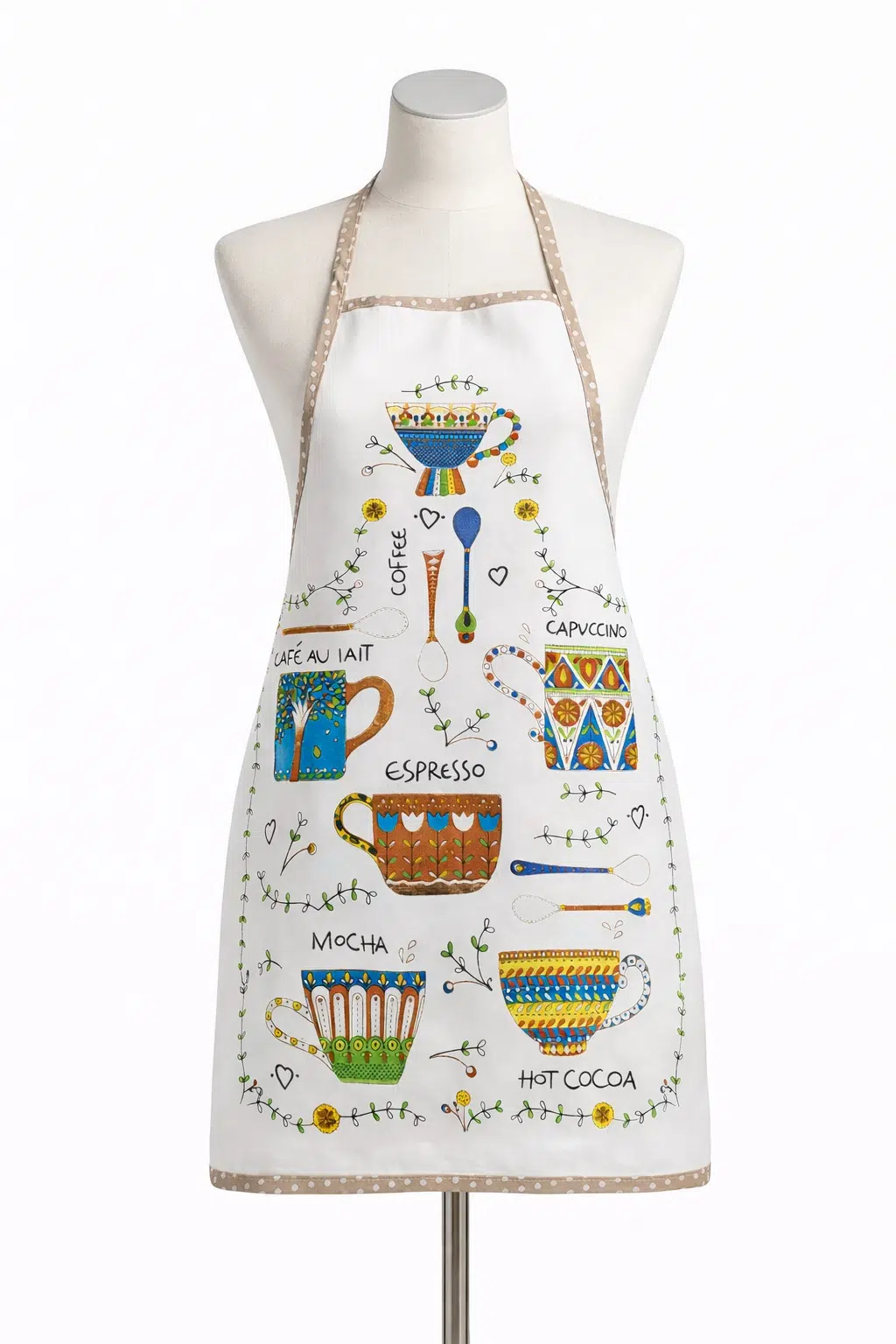 EtiketlerDijital Baskılı Sıvı Geçirmez Desenli Mutfak Önlüğü - Coffee (Kahve Biyeli)