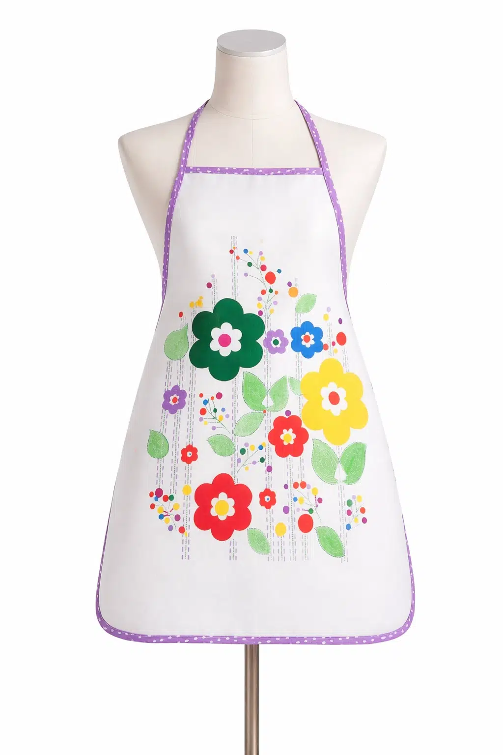 EtiketlerDijital Baskılı Sıvı Geçirmez Desenli Mutfak Önlüğü - Papatya (Lila Biyeli)