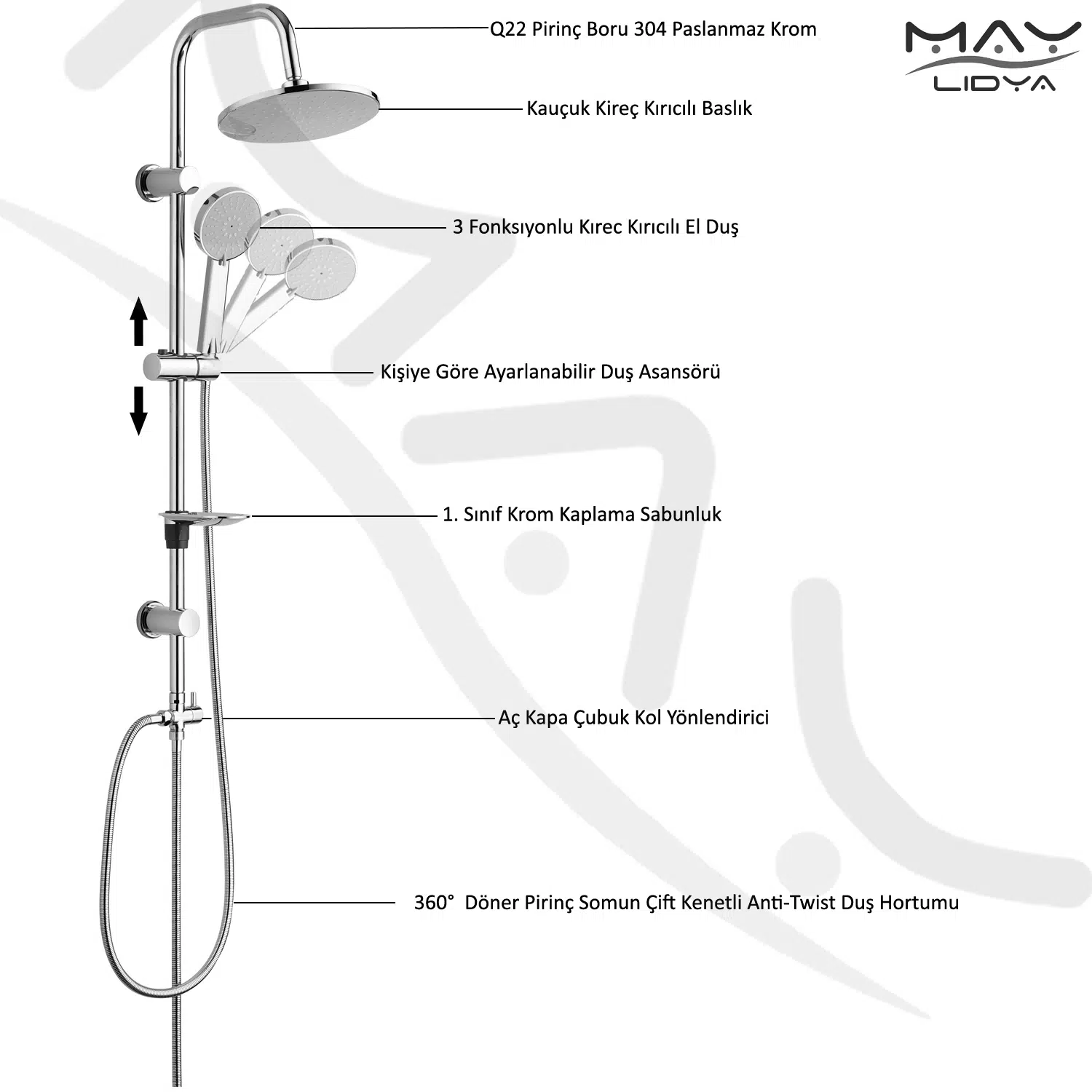 T-MAY Lidya Tepe Duş Seti