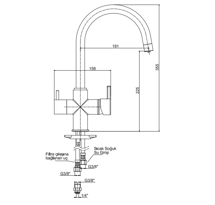 ECA İcon Dual Flow Çift Akışlı Arıtıcı Eviye Bataryası Su Arıtma Bağlantılı 102118138H
