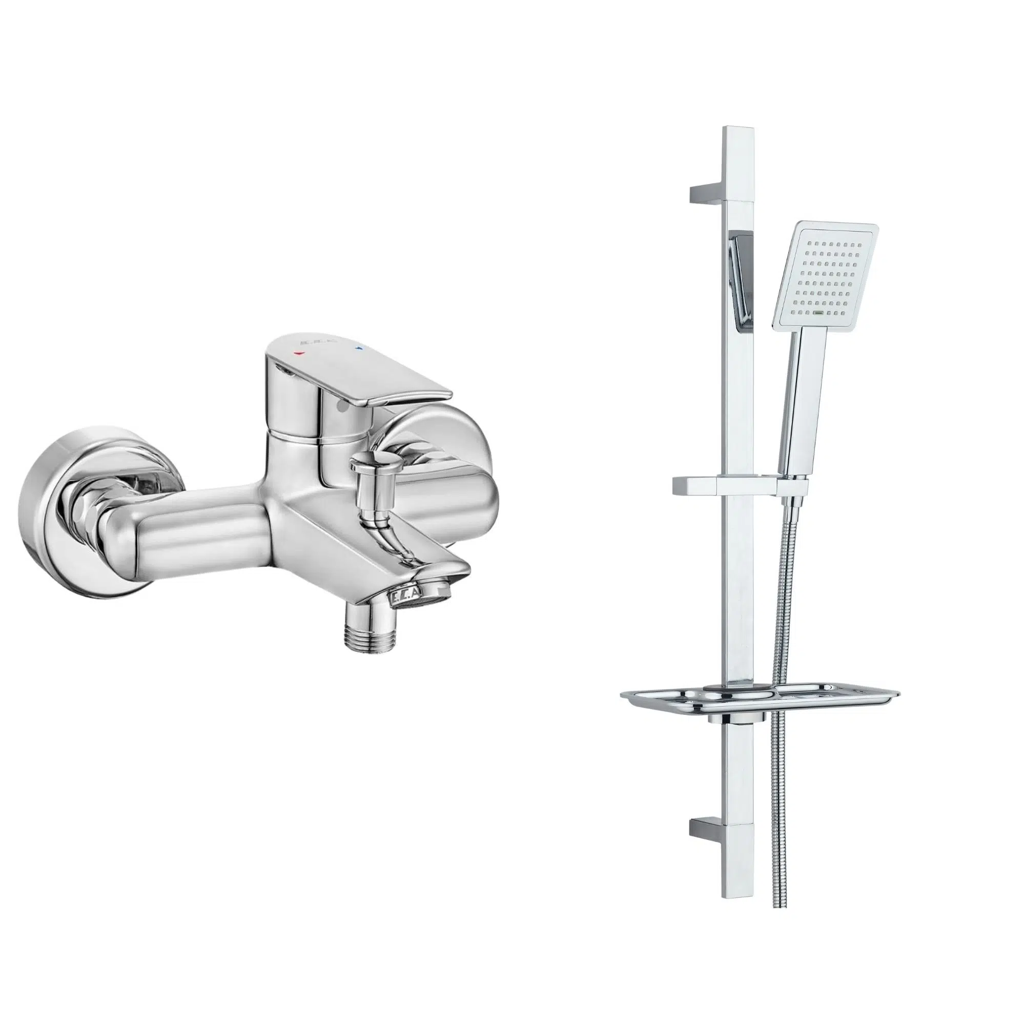 ECA Lia Banyo Bataryası + T-MAY Çam Kare Borulu Hareketli Sürgülü Duş Seti Üst Takım