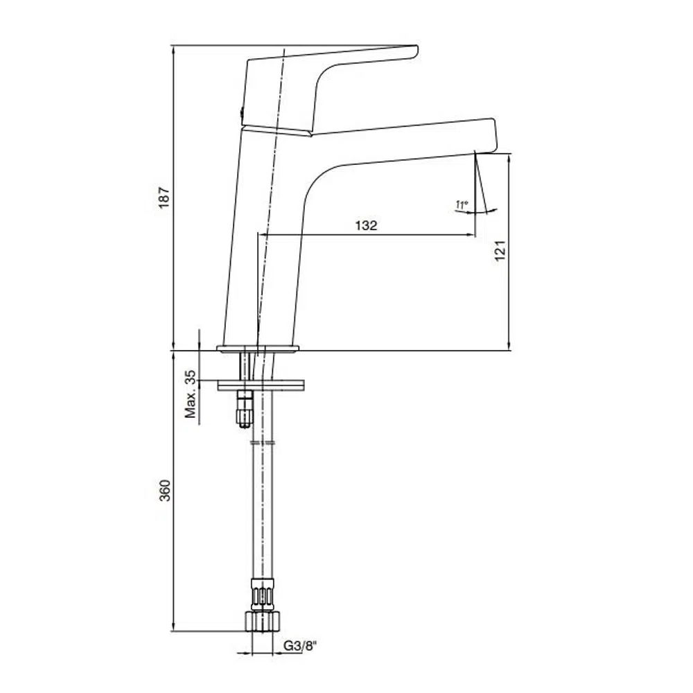 Çıkış Ucu Uzunluğu 132 mm'dir.Çıkış Ucu Yüksekliği 121 mm'dir.Kireç Kırıcılı Gizli Perlatör3 Bar Basınçta Su Akış Miktarı Dakikada Maksimum 9,6 Lt