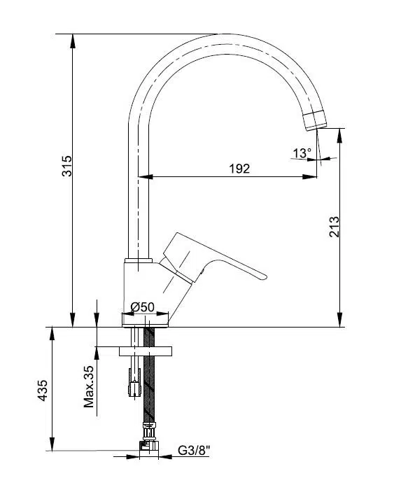 Çıkış Ucu Uzunluğu 192 mm'dir.Çıkış Ucu Yüksekliği 213 mm'dir.3 Bar Basınçta Su Akış Miktarı Dakikada 7 Lt "ST" 'li Kodlarda İse Dakikada Maksimum 5 Lt'dir.