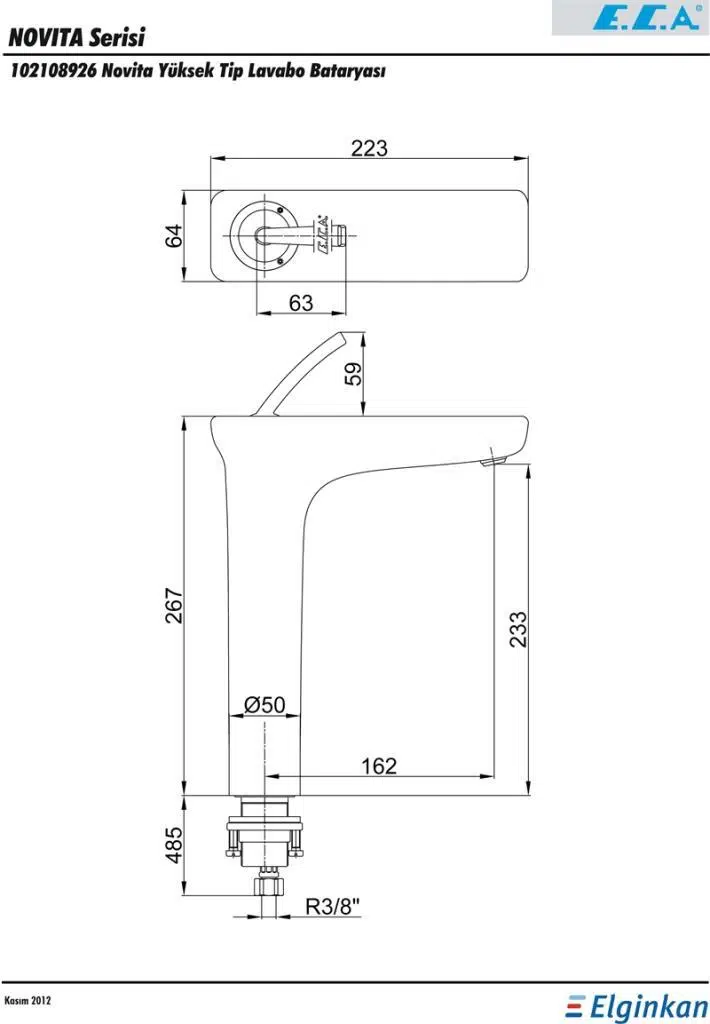EtiketlerECA Novita Yüksek Tip Lavabo Bataryası 102108926H