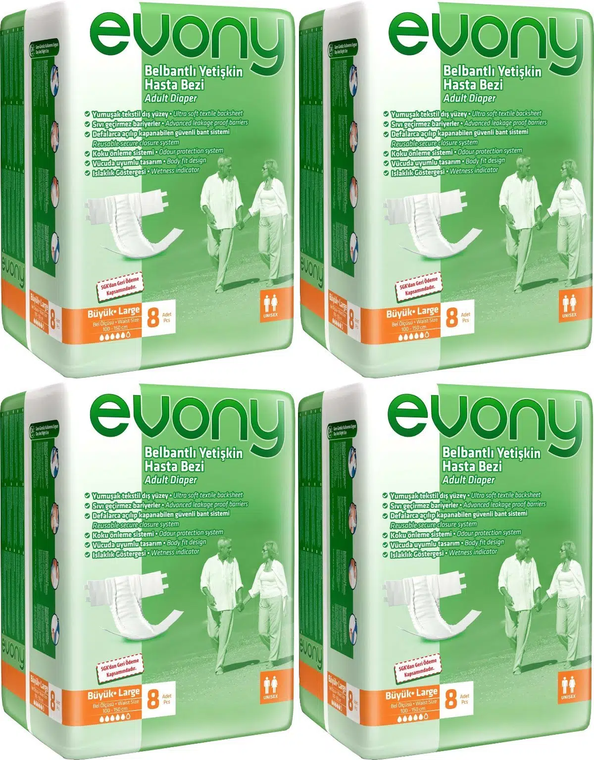 | Etiketler | Evony Hasta Bezi Bel Bantlı Ekonomik Pk Büyük-L 32 Adet |