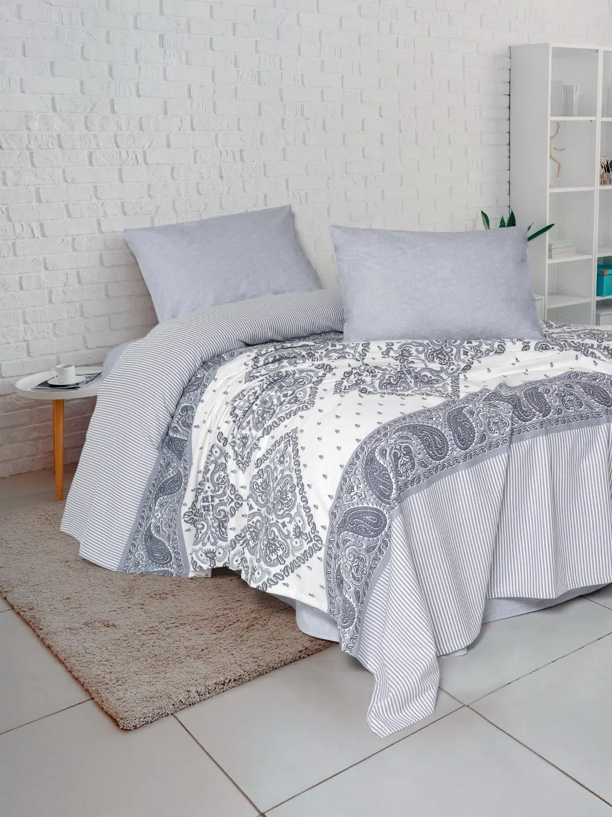 FİX Baskılı Tek Kişilik Pike Takım Alope Gri