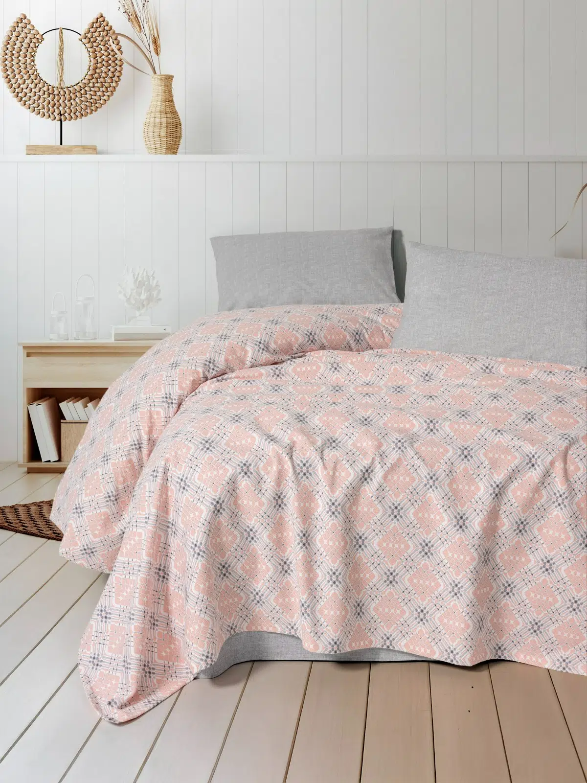 FİXE Baskılı Çift Kişilik Pike Takımı Fine Pembe