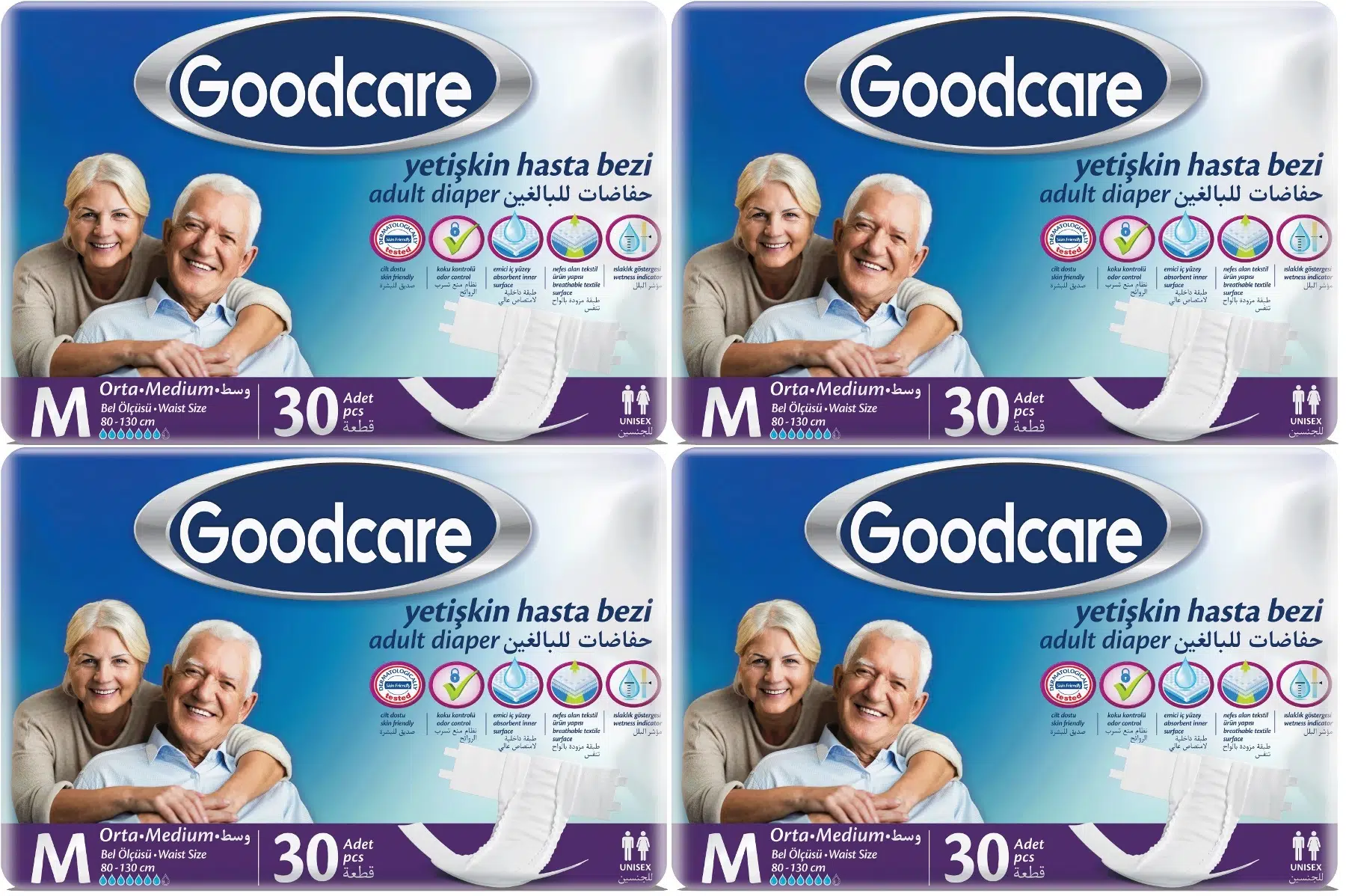 EtiketlerGoodcare Hasta Bezi Yetişkin Bel Bantlı Tekstil Yüzey M Medium - Orta 120 Adet (4PK*30)