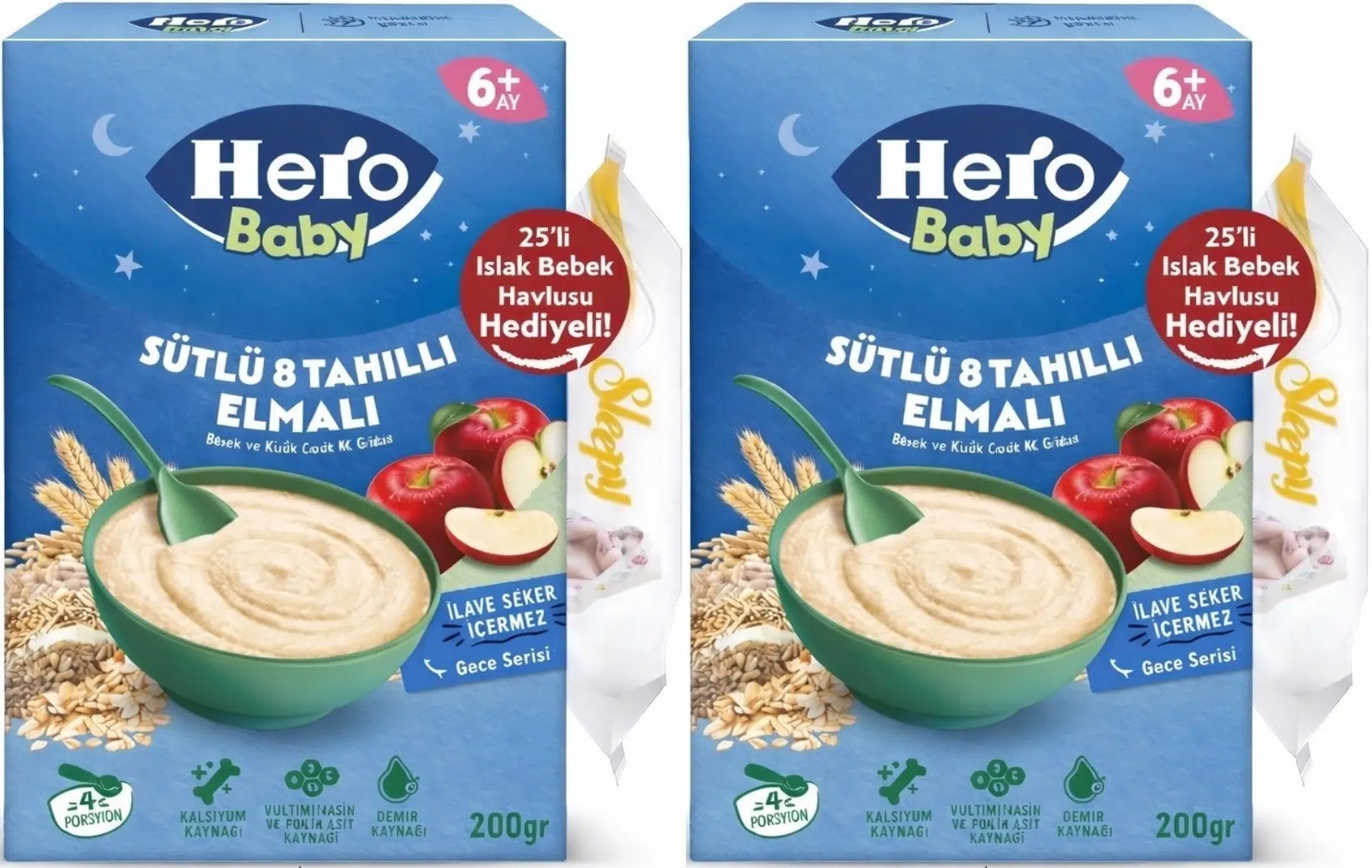 | Etiketler | Hero Baby Kaşık Maması 200GR Gece Sütlü Elmalı 8 Tahıllı + Islak Mendil Hediye (2 Li Set) |