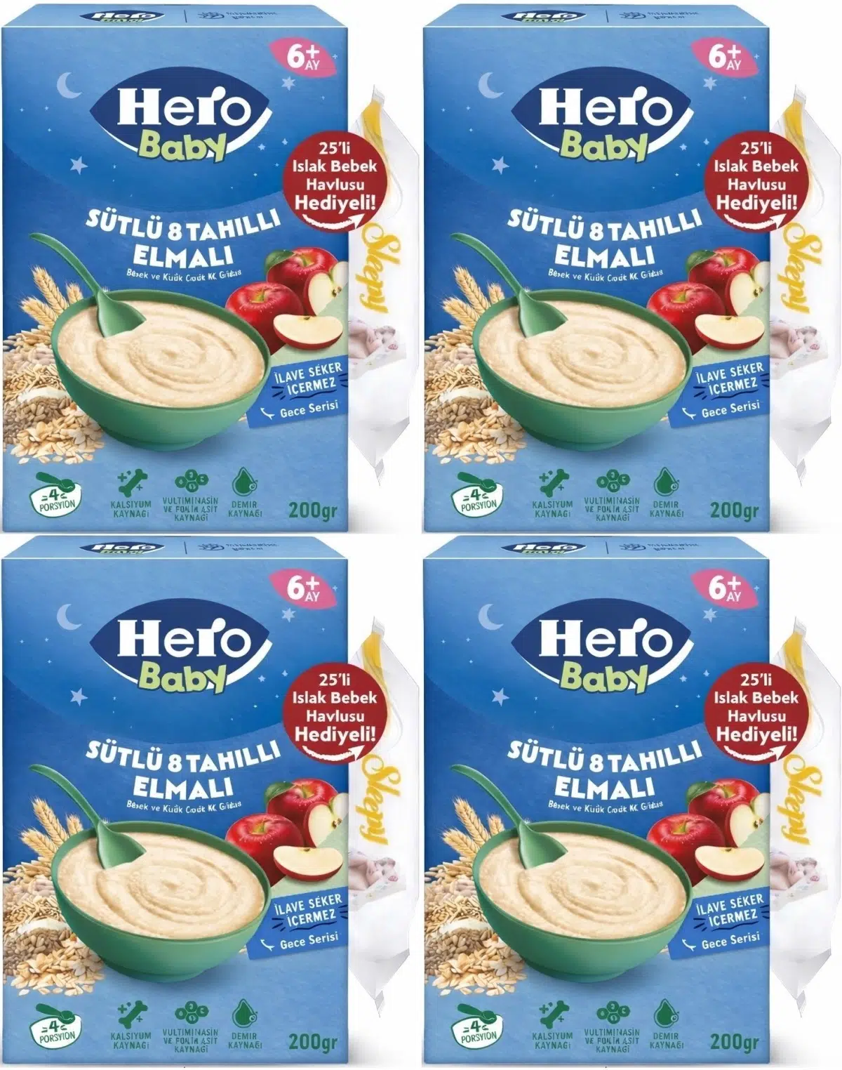 | Etiketler | Hero Baby Kaşık Maması 200GR Gece Sütlü Elmalı 8 Tahıllı + Islak Mendil Hediye (4 Lü Set) |