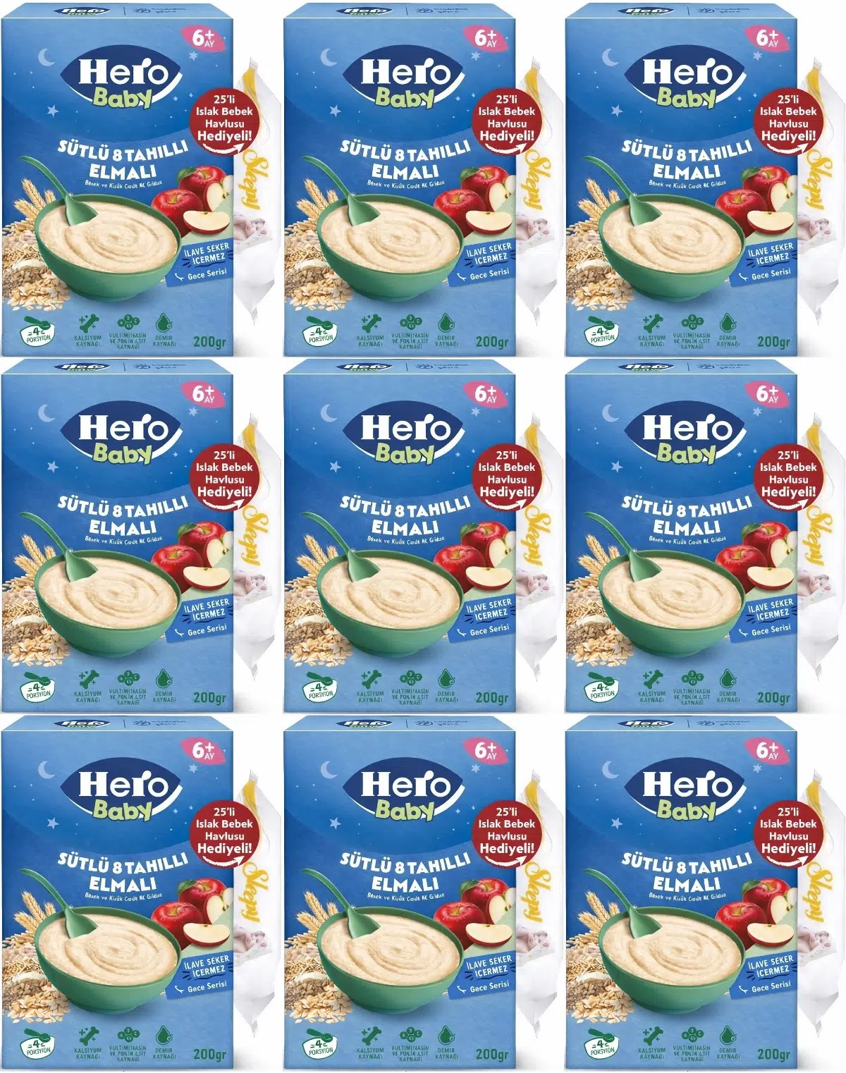 | Etiketler | Hero Baby Kaşık Maması 200GR Gece Sütlü Elmalı 8 Tahıllı + Islak Mendil Hediye (9 Lu Set) |
