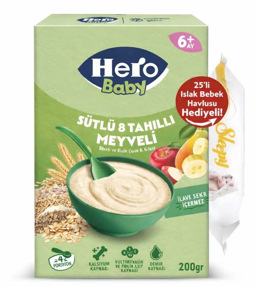 | Etiketler | Hero Baby Kaşık Maması 200GR Sütlü 8 Tahıllı Meyveli + Islak Mendil Hediye |