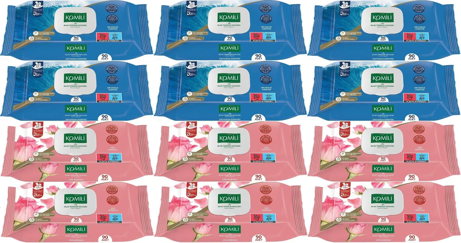| Etiketler | Komili Islak Havlu Mendil 90 Yaprak Karma 12 Li Set (Okyanus Esintisi-Gül Kokulu) 1080 Yaprak |