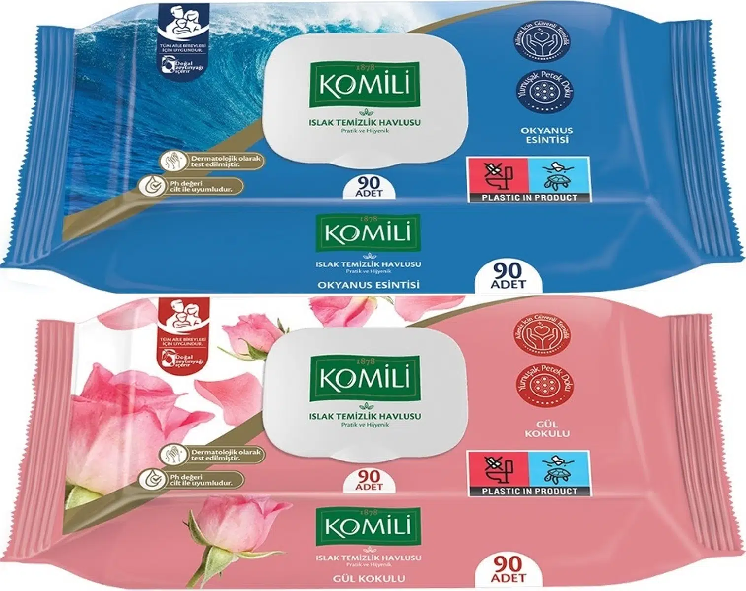 | Etiketler | Komili Islak Havlu Mendil 90 Yaprak Karma 2 Li Set (Okyanus Esintisi-Gül Kokulu) 180 Yaprak |
