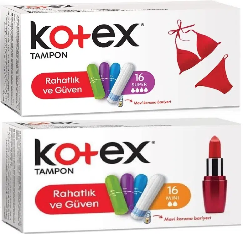 Kotex Tampon Super ve Mini, sızıntıyı engelleyen mavi koruma bariyeri, ipeksi dış yüzeyi ve rahat yerleştirebilme özelliği ile özel günlerinizde rahatlık ve korumayı bir arada sunuyor.