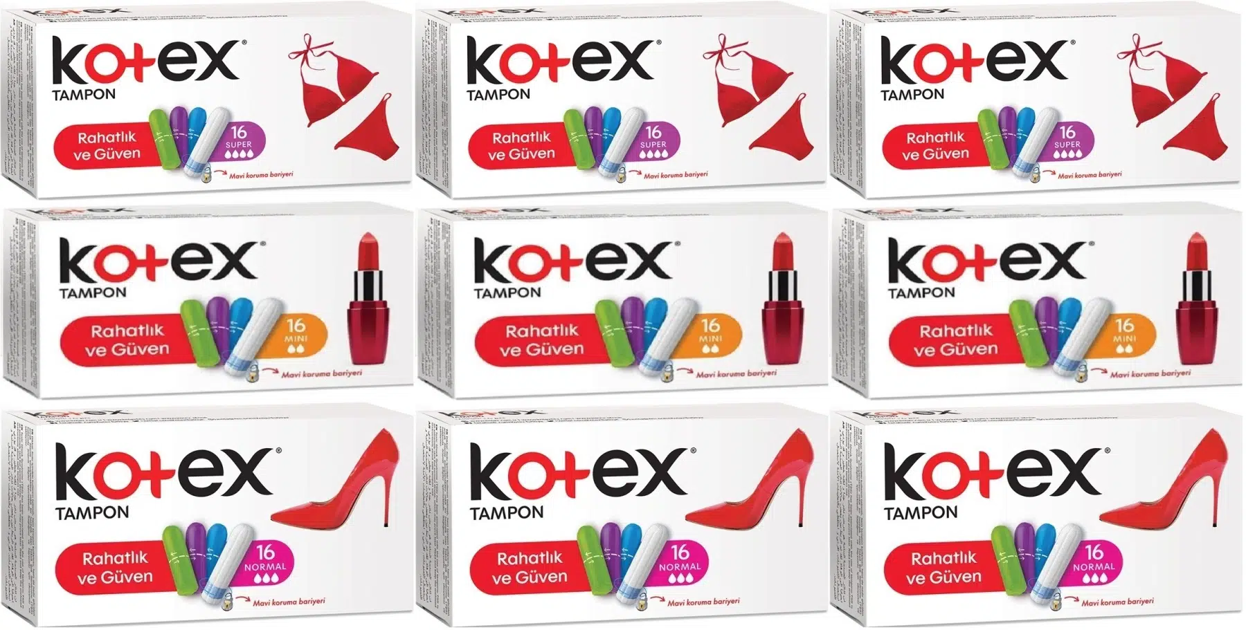 | Etiketler | Kotex Tampon Süper - Mini - Normal 144 Lü Karma Set (9PK*16) |