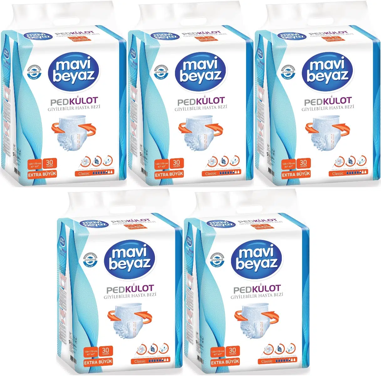 | Etiketler | Mavi Beyaz Ped Emici Külot Hasta Bezi XL Ekstra Büyük 150 Adet |