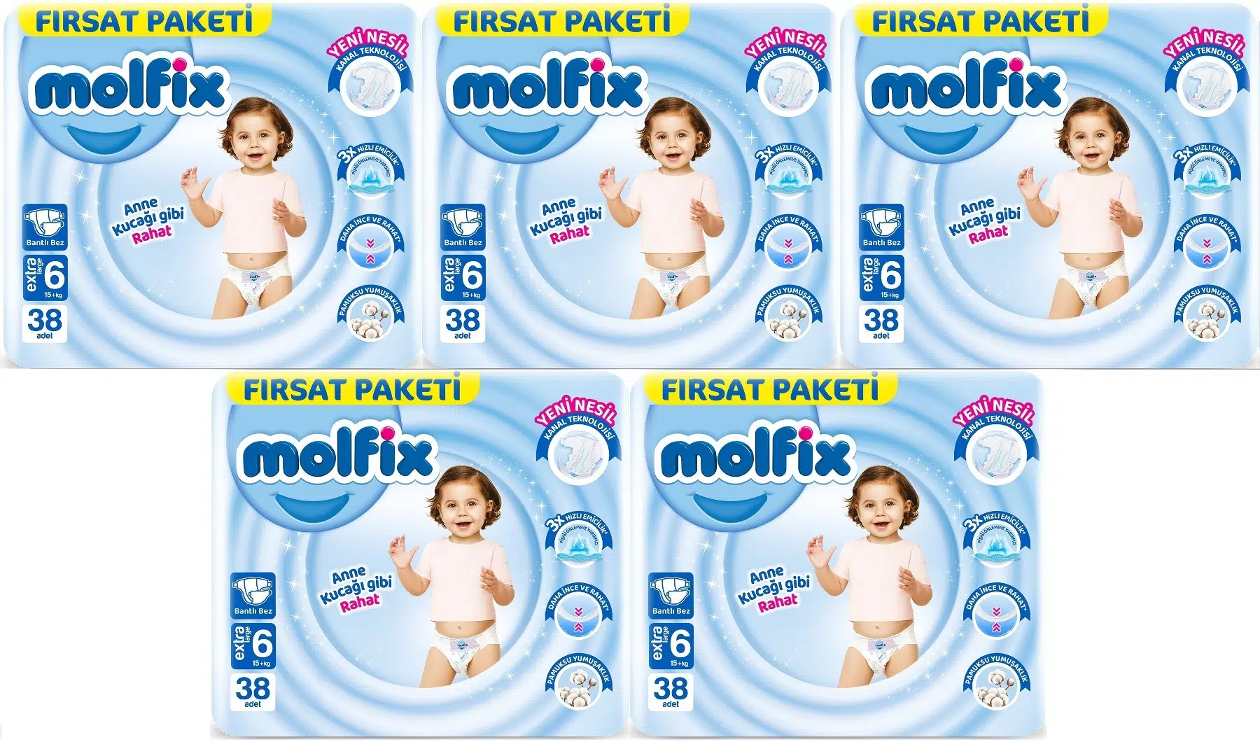 Molfix Bebek Bezi Beden:6 (15+KG) Extra Large 190 Adet Mega Fırsat Pk