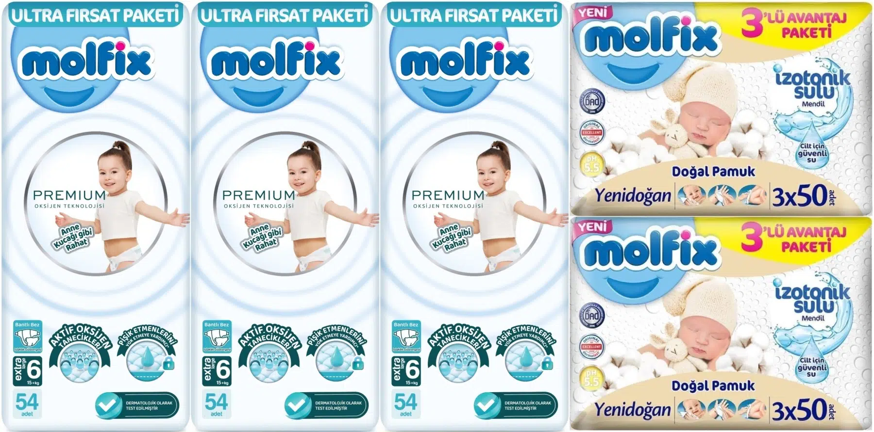 | Etiketler | Molfix Premium Bebek Bezi Beden:6 (15+KG) Extra Large 162 Adet Ultra Fırsat Pk + 6 Adet Islak Mendil |
