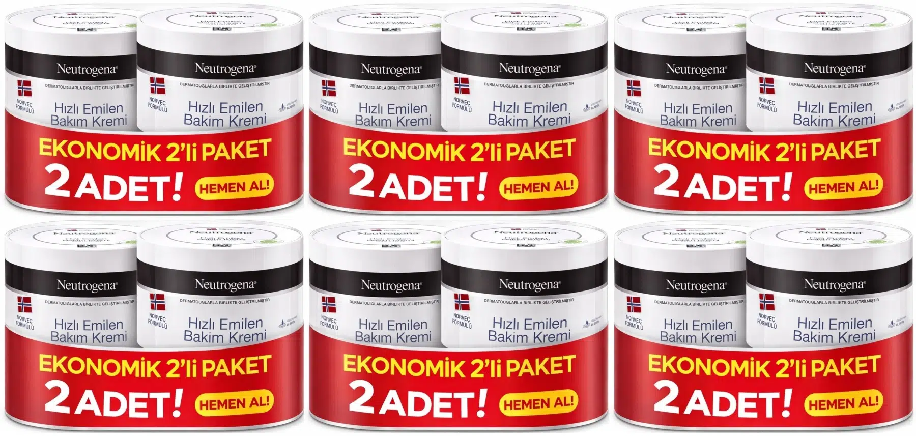 EtiketlerNeutrogena Norveç Formülü Hızlı Emilen Bakım Kremi 200ML+200ML 400ML Avantaj PK (6 Lı Set)