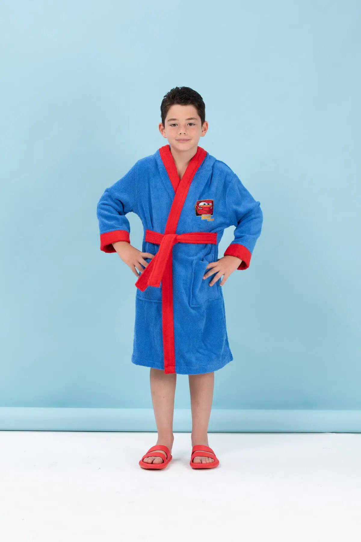 EtiketlerÖzdilek Lisanslı Kapüşonlu Çocuk Bornozu 5/6 Yaş-Cars Mcqueen Mavi