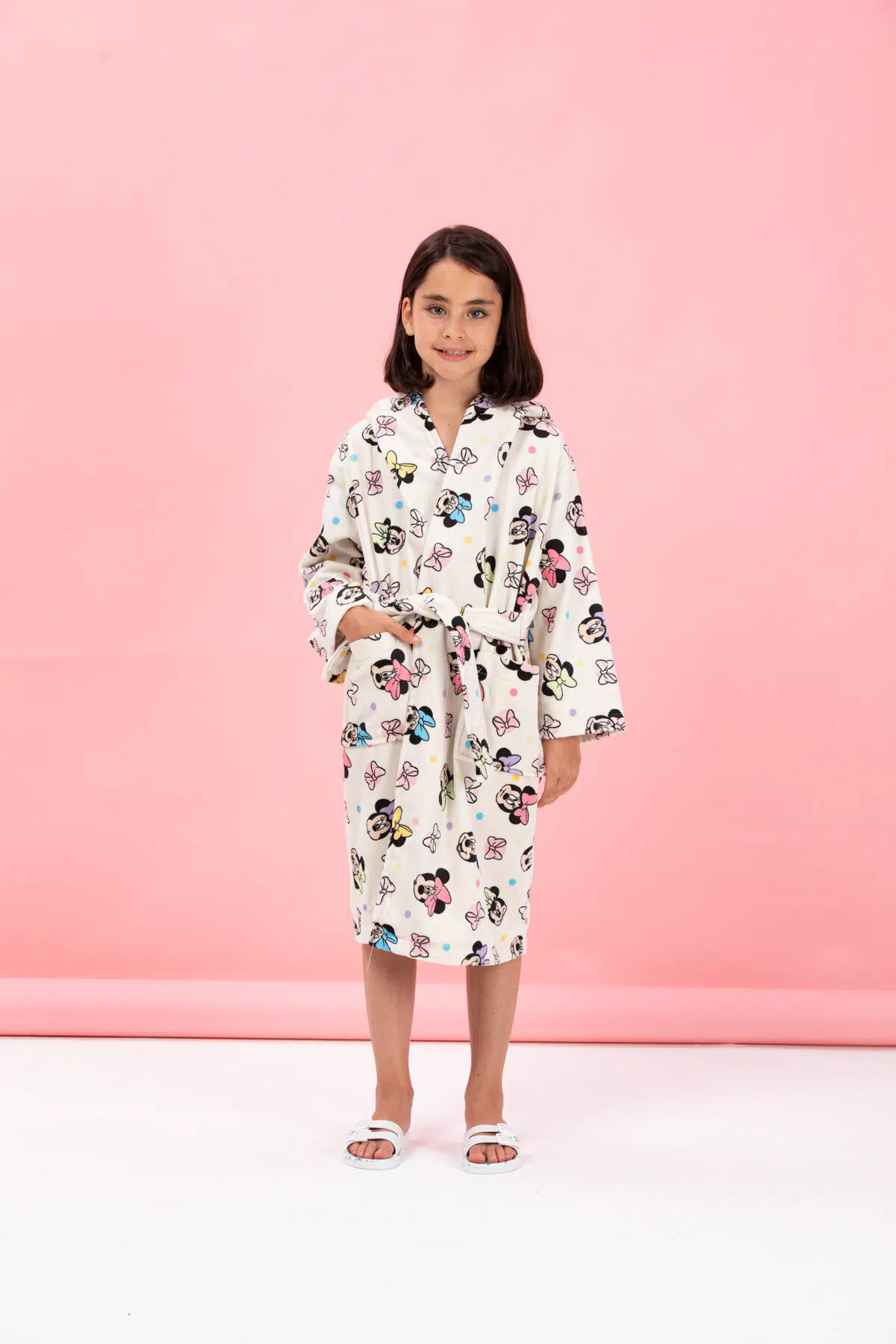 Özdilek Lisanslı Kapüşonlu Çocuk Bornozu 5/6 Yaş-Minnie Mouse Colors Krem