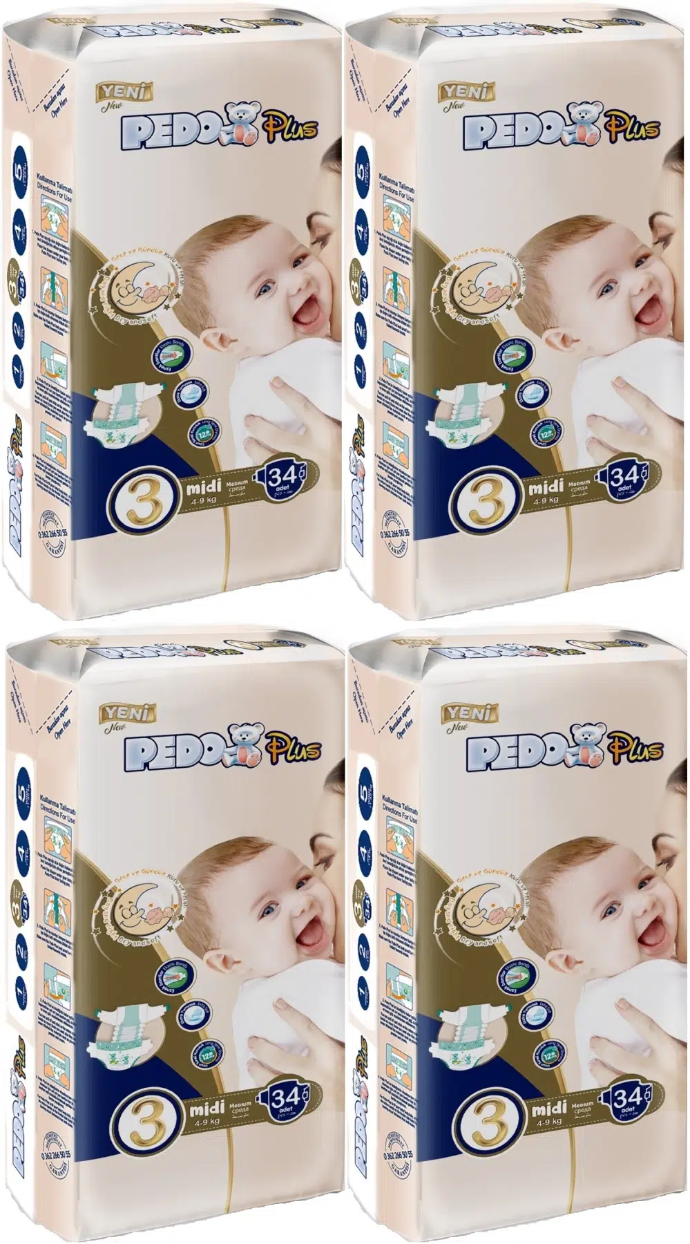 | Etiketler | Pedo Plus Bebek Bezi Beden:3 (4-9KG) Midi 136 Adet Jumbo Aylık Pk |