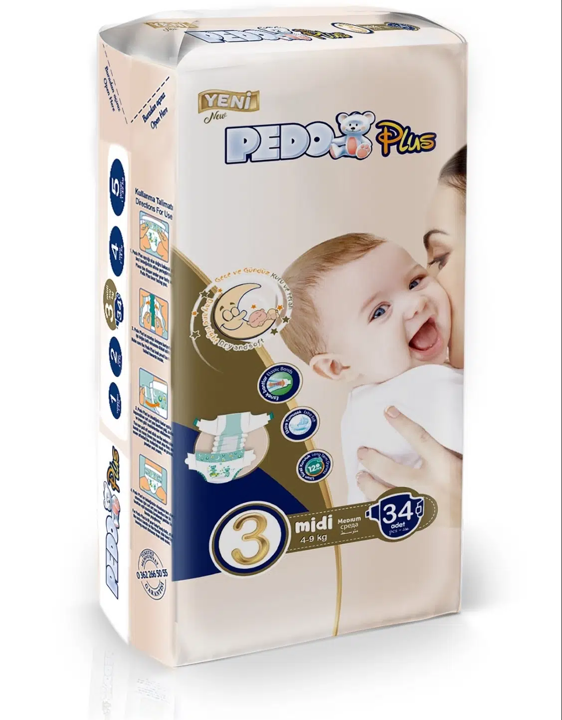 | Etiketler | Pedo Plus Bebek Bezi Beden:3 (4-9KG) Midi 34 Adet Jumbo Pk |
