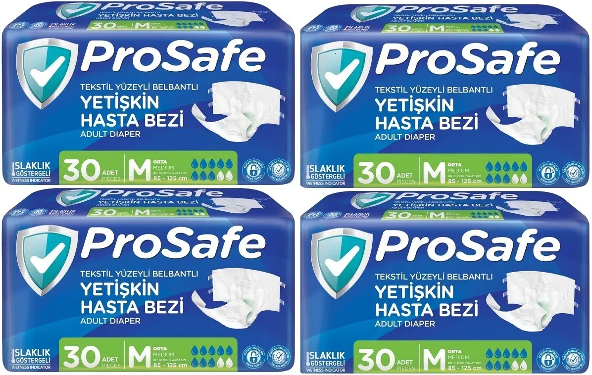 | Etiketler | Prosafe Hasta Bezi Yetişkin Bel Bantlı Tekstil Yüzey M - Medium - Orta Boy 120 Adet (4PK*30) |