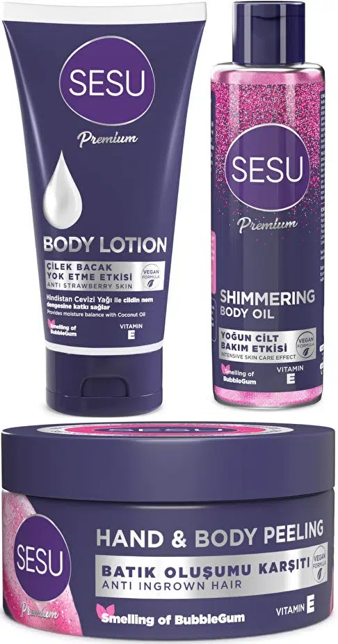 | Etiketler | Sesu Vücut Losyonu 175ML/Vücut Peelingi 250ML/Simli Cilt Bakım Yağı 150ML Karma (3 Lü Set) |