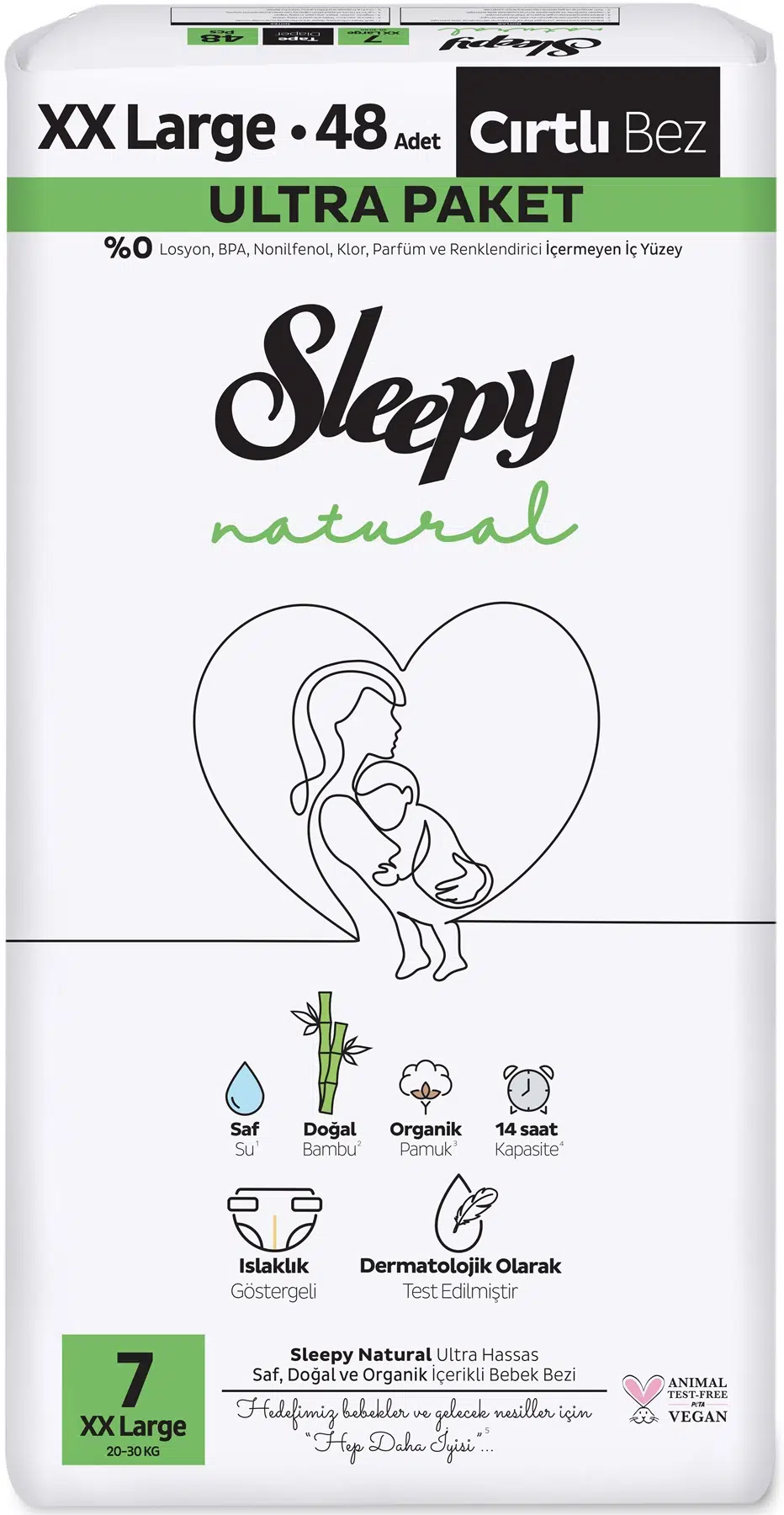| Etiketler | Sleepy Bebek Bezi Natural Beden:7 (20-30KG) XX Large 48 Adet Ultra Pk |