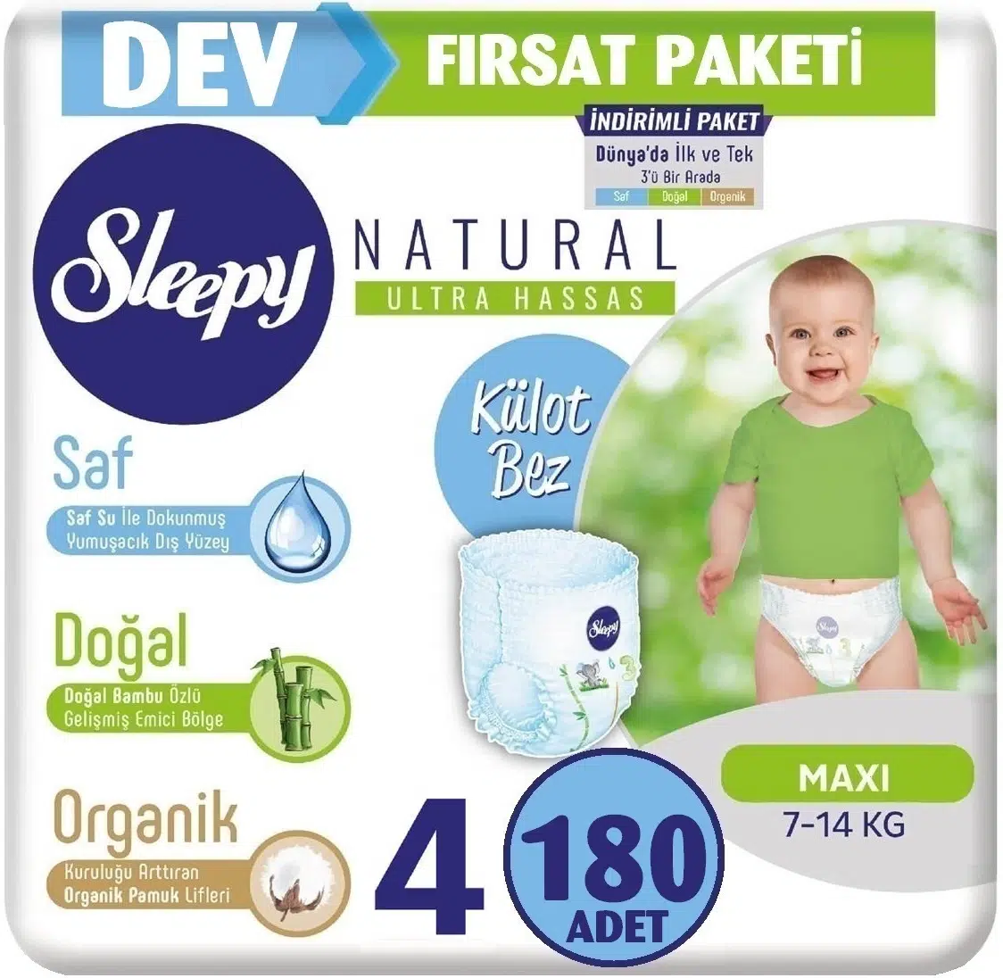 EtiketlerSleepy Külot Bebek Bezi Beden:4 (7-14Kg) Maxi 180 Adet 2 Li Jumbo Pk Serisi (3 Lü Set)