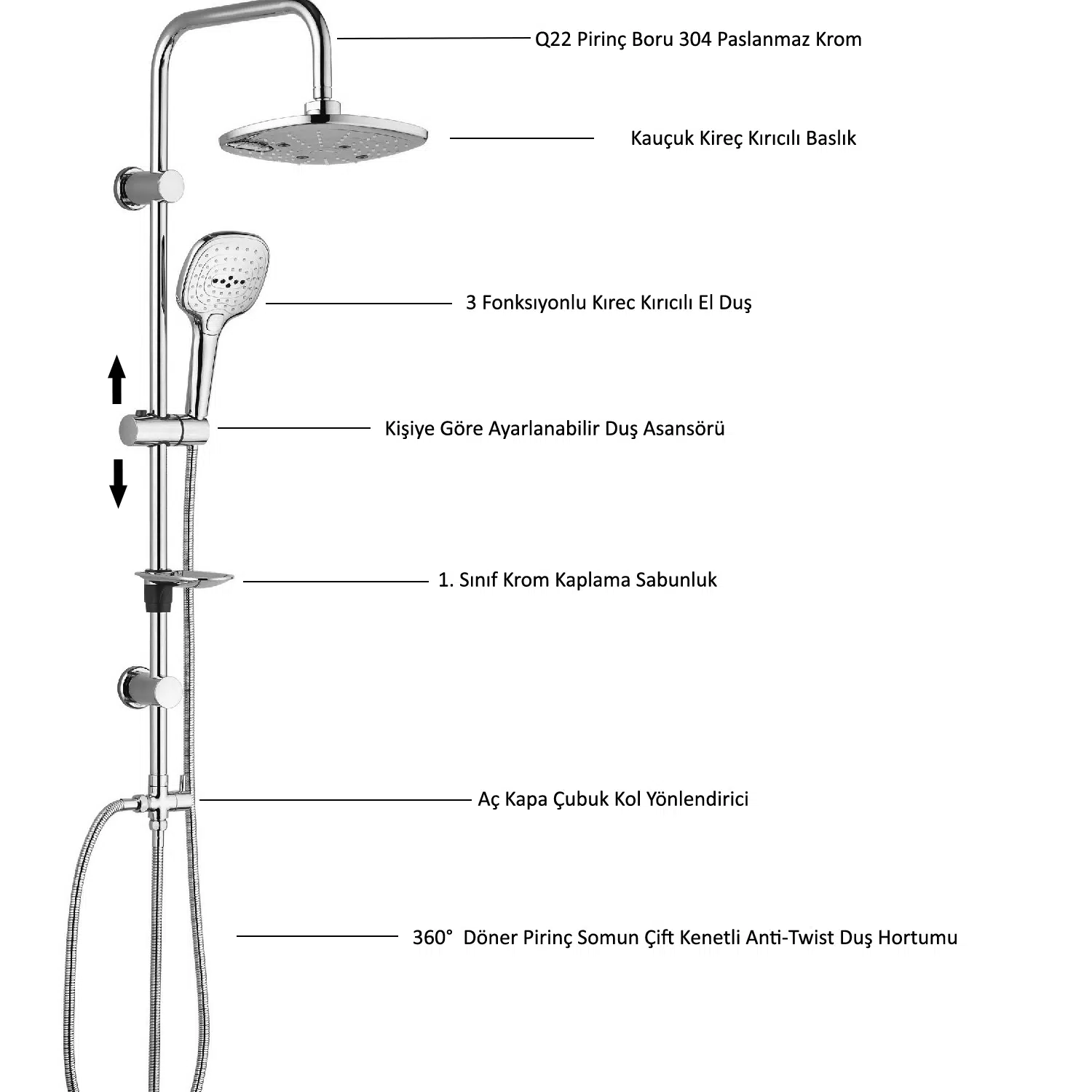 Krom Kaplı Sürgü SetiQ22 Krom Kaplı Paslanmaz ss 304 Boru3 Duş Fonksiyonu150-170 Cm Uzayan Duş SpiraliYüzde Yüz Müşteri Memnuniyeti Garantisi