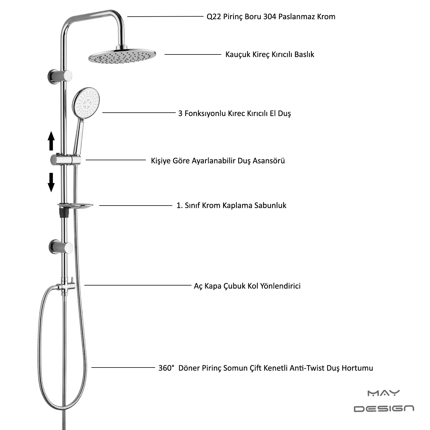 | Etiketler | T-MAY Banyo Bostan Tepe Duş Takımı Seti Krom Paslanmaz |